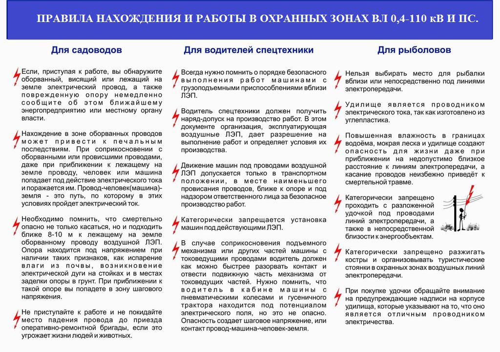 Правила нахождения и работы в охранных зонах ВЛ 0,4-110 кВ и ПС